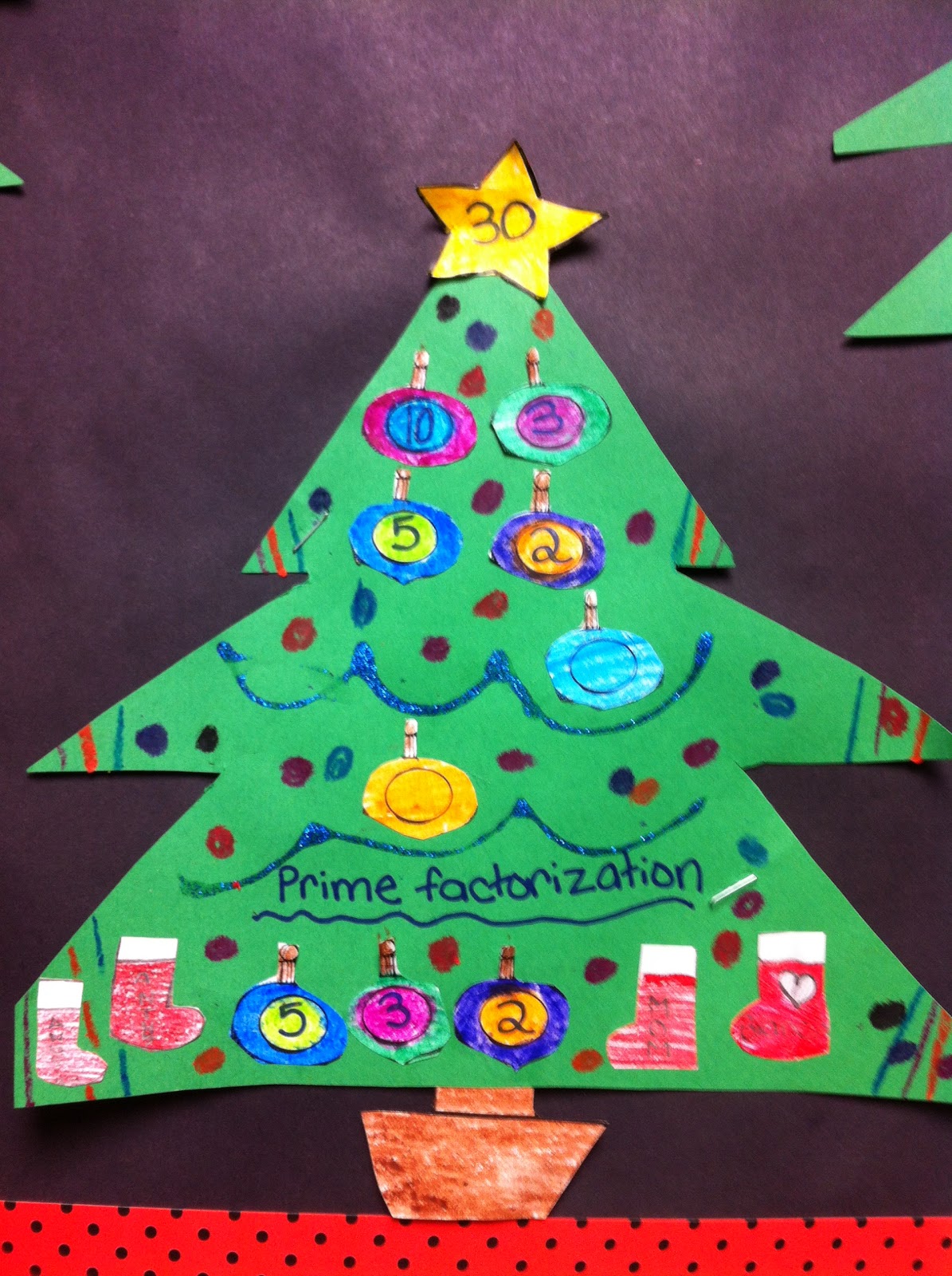 These were part of my Christmas Factor Trees and Other Activities pack that was a hot selling item this winter. I love how my bulletin board turned out because it is hard to find good math bulletin boards to make!