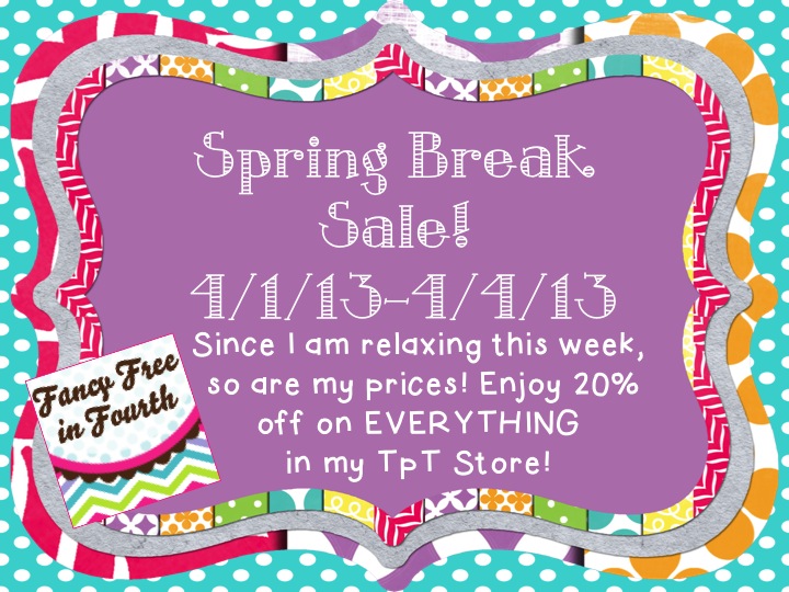 Throw on your sandals and later up that SPF 30…. In honor of Spring Break, enjoy 20% off of EVERYTHING in my Teachers Pay Teachers Store in honor of Spring Break!