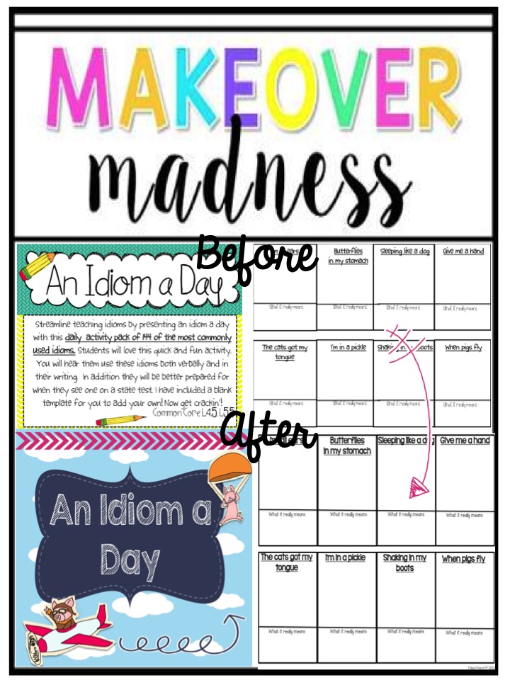 I am so excited to be apart of the TpT Seller Challenge that Sparkling in Second, Peppy Zesty Teacherista, Teach Create Motivate and Third in Hollywood have started. Week #1’s challenge is to makeover a product. I chose one of my top sellers, and my first product, my An Idiom a Day. (Find out how you can win this below!)