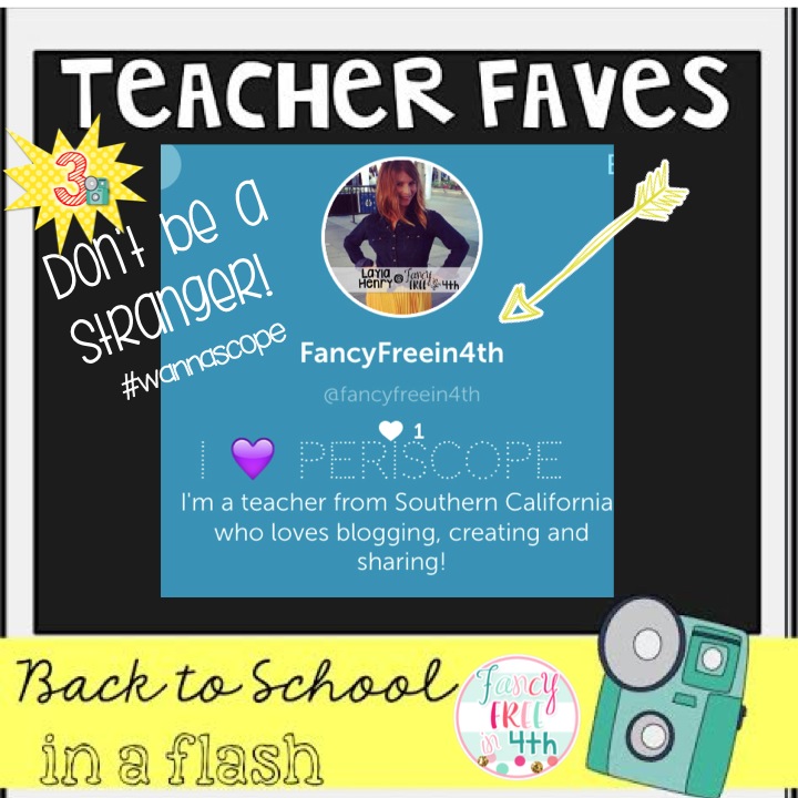 3) I am sure most of you have jumped on the Periscope wagon, but if you haven’t because you are hesitant to add another thing to your plate… I suggest you do. There are so many amazing tips, tricks and tutorials available to you live from your favorite teacher bloggers. Ramona Recommends has great tips on incorporating Read Alouds into upper grade classrooms. Rachel Lynette has had a smorgasbord of amazing ideas and Glitter Meets Glue has been hosting a ton of giveaways! It’s a great space to connect and see practical things that you can use in your classroom.