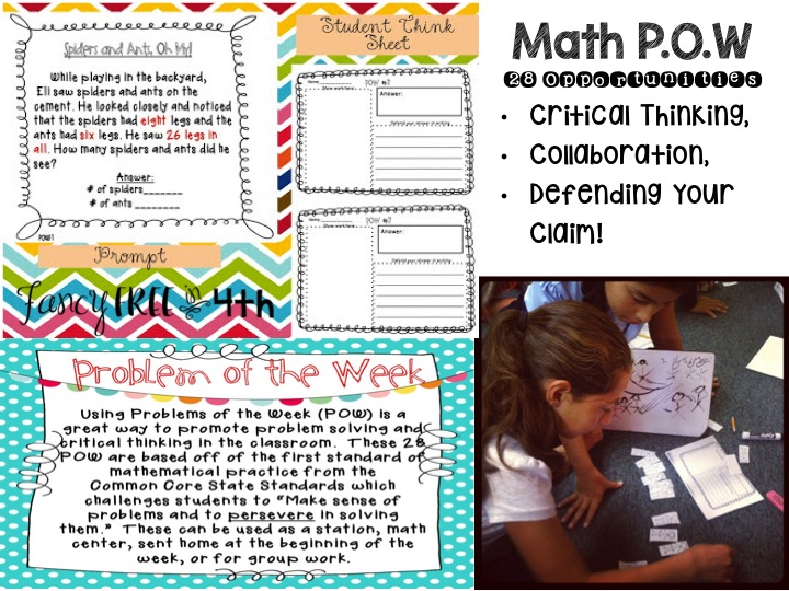 I love this product because it PERFECT for common core and getting students to become Problem Solvers who Persevere! I designed the Problem of the Week to be an in class activity rather than an enrichment handout that goes home. This encourages the students to critically solve these on their own, or with a partner/group, rather than take it home and have a parent or sibling help. In a nutshell there are 28 problems that span the different CCSS Math strands and ask the students to critically think, solve the problem using various methods and then prove their answer in numbers, pictures and words.